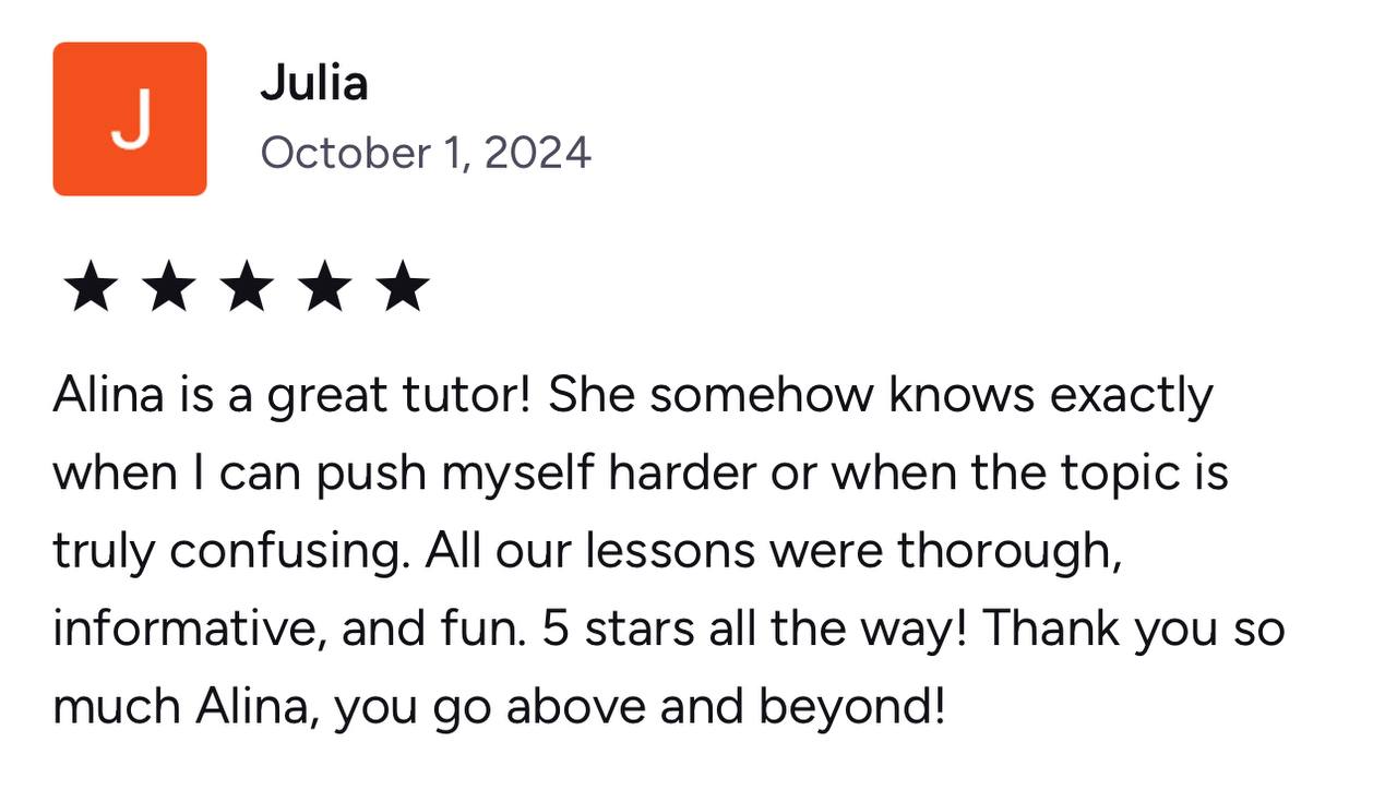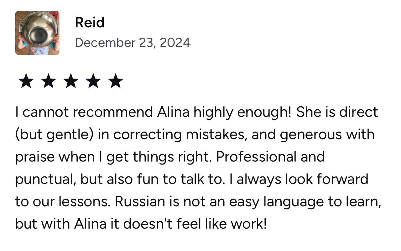Russian has a reputation for being challenging, but with the right teacher and methods, it becomes much easier. We focus on practical communication and breaking down grammar step by step so it feels manageable.